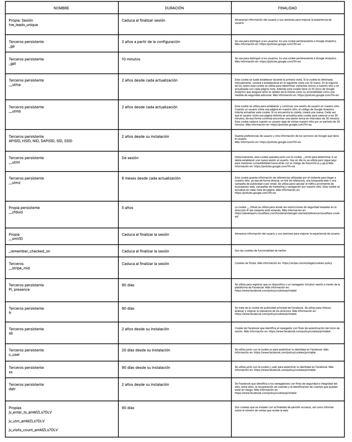 – Las generadas por servicios de análisis, concretamente, Google Analytics y GOHIGHLEVEL Y MICROSOFT CLARITY para ayudar al website a analizar el uso que hacen los Usuarios del sitio web y mejorar la utilización del mismo, pero en ningún caso se asocian a datos que pudieran llegar a identificar al usuario.